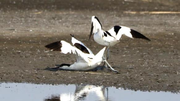 腿长嘴长,羽毛黑白相间,因喙向上弯曲而闻名,成群地徜徉在新华湖上空,它就是有“长腿超模”美誉的反嘴鹬。